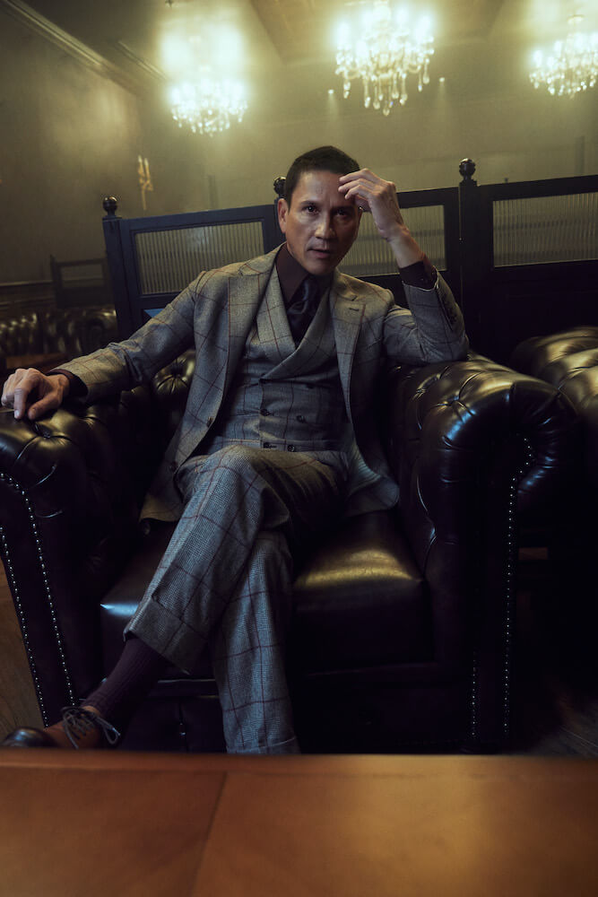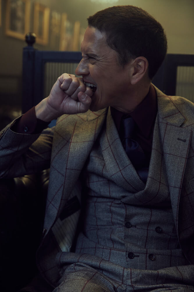 ด้วยความชิคของคิงเอ็ดเวิร์ดที่ 8 ทางแบรนด์เลยเลือกผ้า Prince of Wales จากแบรนด์ Vitale Barberis Canonico ที่เป็นชื่อของพระองค์มาใช้เลย ตัวผ้าเป็นสักหลาดอ่อนสีน้ำตาลเทาพาดผ่านด้วยเส้นตารางสีแดงเขือง ที่นอกจากลายผ้าจะดูเตะตาไม่เข้ากับบริบทของการใส่สูทในบ้านเรา แถมยังมีอากาศที่โคตรร้อนของเมืองไทยแล้ว ลุคนี้จัดได้ว่าขบถเป็นที่ 1 เลย ทางแบรนด์ยังจัดลุคนี้ให้เป็นแบบ 3 piece suit ที่โคตรจะพิเศษตรงเสื้อกั๊กด้านในที่ทำให้ลุคนี้ดูซับซ้อนน่าหลงใหลยิ่งขึ้น ด้วยการตัดเย็บแบบต่อลายผ้าทั้งตัวจะช่วยดึงดีเทลของลายผ้าให้ดูโดดเด่นสำหรับผู้ใส่อีกด้วย